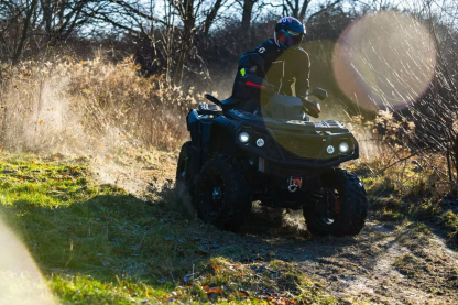 Короткая одноместная платформа добавляет квадроциклу спортивный характер. В этой версии модель имеет электроусилитель руля (EPS), алюминиевые легкосплавные диски, лебедку с тяговым усилием 1500 кг, усиленный передний и задний бампер и расширители колесных арок. Такая комплектация позволяет лишь с минимальной дополнительной подготовкой уже отправиться штурмовать бездорожье и сложные маршруты.