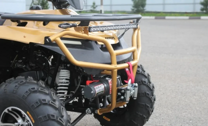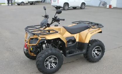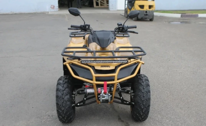 ATV250 имеет современный дизайн и компоновку. Элементы конструкции спроектированы таким образом, что бы обеспечить комфортное передвижение по любому покрытию. Для удобства установлены розетка питания 12 вольт, панель приборов со всей необходимой информацией, электрозапуск двигателя. Широкие колесные арки уменьшают попадание грязи на водителя, продуманное сиденье позволят занять любому человеку удобную посадку на квадроцикле. Проверенный годами эксплуатации двигатель 250 куб.см разгоняет квадроцикл до 65 км/ч. Механическая коробка передач позволяет максимально ощутить всю мощность двигателя. Бак 10 литров позволяет преодолеть большое расстояние без дозаправки.