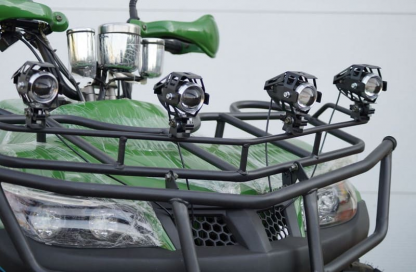 БЕЗОПАСНОСТЬ. Квадроцикл оснащен ручными и ножными дисковыми гидравлическими тормозами, обеспечивая надежное торможение в любых условиях. Пульт дистанционного управления с функцией сигнализации добавляет уровень безопасности, позволяя владельцу контролировать квадроцикл на расстоянии. При необходимости можно использовать цепи противоскольжения для повышения проходимости, что делает вездеход надежным выбором для активного отдыха.
