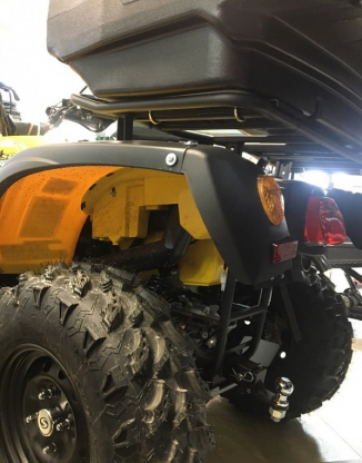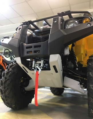 Квадроцикл оснащен системой дистанционного управления, дисковыми гидравлическими тормозами, зеркалами заднего вида и световым оборудованием. В стандартной комплектации квадроцикла установлены расширители колесных арок, защита днища, металлический бампер с декоративной накладкой. Кроме того, его трехступенчатая коробка передач позволяет выбирать режим езды в зависимости от условий и опыта водителя.