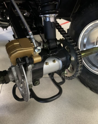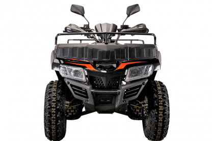 Квадроцикл оснащен системой дистанционного управления, дисковыми тормозами, зеркалами заднего вида и световым оборудованием. В стандартной комплектации квадроцикла установлены расширители колесных арок, защита днища, металлический бампер с декоративной накладкой. А также в комплекте с квадроциклов удлиненное сиденье и большие широкие подножки, позволяющие водителю удобно разместиться на транспорте.