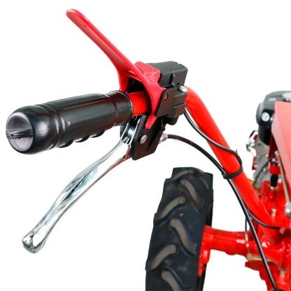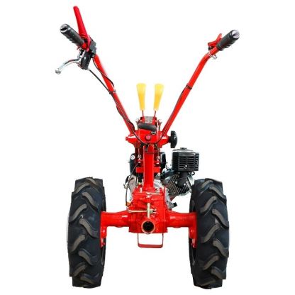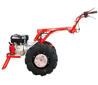 Мотоблок МТЗ Беларус 09Н-02 с двигателем WEIMA 177F 9.0 л.с. предназначен для различных сельскохозяйственных работ по вспашке и культивированию земли, транспортировке грузов, поливке водой и удобрениями огородов и полей. Кроме этого, прикрепив к мотоблоку прицепное устройство или навесное оборудование можно, например, косить траву или убирать снег. Применение мотоблока значительно ускоряет и облегчает тяжёлые работы в сельском хозяйстве, заменяя непроизводительный ручной труд. Мотоблок МТЗ Беларус 09Н-02 с двигателем WEIMA 177F 9.0 л.с. работает на бензиновом четырёхтактном двигателе WEIMA 177F OHV мощностью 9 л. с. и объёмом 270 куб. см. Этот мотор адаптирован для длительной беспрерывной работы в тяжёлых условиях для чего оборудован усиленной чугунной гильзой цилиндра и имеет усиленный ВОМ с частотой вращения 1000 оборотов в минуту. Также вполне приспособлена к передвижению по тяжёлому грунту коробка передач мотоблока. Она имеет четыре передних скорости и две задние скорости и переключение на диапазон с повышенной и пониженной передачей. Передние передачи позволяют движение вперёд со скоростью от двух до шестнадцати км в час, а задние – от двух до четырёх км в час. Такое количество передач позволяет оперативно оптимизировать скорость мотоблока в зависимости от конкретных рабочих условий. Также весьма совершенным является механизм сцепления мотоблока оборудованный усиленными дисками сцепления. Таким образом муфта сцепления является многодисковой и постоянно замкнутой в масляной ванне. Повышению износостойкости и надёжности работы мотоблока несомненно способствует улучшенный дифференциал, который имеет большое количество зубьев на планетарной шестерне. Не смотря на довольно значительный вес мотоблока, который составляет 217 кг, управление агрегатом не вызывает особых сложностей. Лёгкость управления помимо всего прочего также обеспечивается двумя мощными колёсами диаметром 6×12 и усовершенствованной рулевой колонкой. Так, для того, чтобы перейти на задний ход достаточно. не теряя лишнего времени и многих усилий, просто отвернуть несколько болтов и развернуть на 180 градусов рулевую колонку. Мотоблок МТЗ Беларус 09Н-02 с двигателем WEIMA 177F 9.0 л.с. является универсальным и надёжным механизмом, который отлично зарекомендовал себя на российском рынке сельскохозяйственного оборудования.