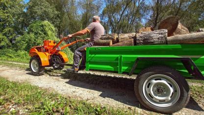 Возможности агрегатирования мотоблока практически не ограничены благодаря четырем приводам ВОМ. Это задний и передний шкивы под ремень, вал под шпонку и шестеренчатый ВОМ для навесной почвофрезы. Такое оснащение позволяет задействовать полный спектр активного навесного оборудования для сельскохозяйственных и других работ — косилки, сеялки, копалки, шнекороторы и т. д., а также использовать мотоблок для работы стационарного оборудования (мельницы, помпы и т. п.).
