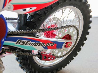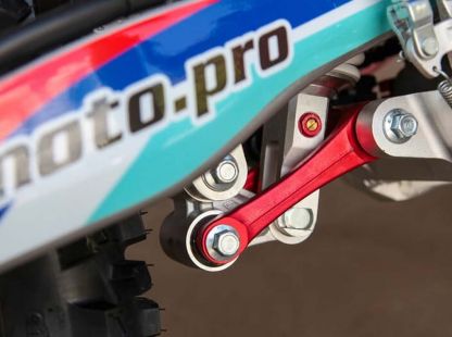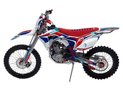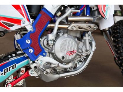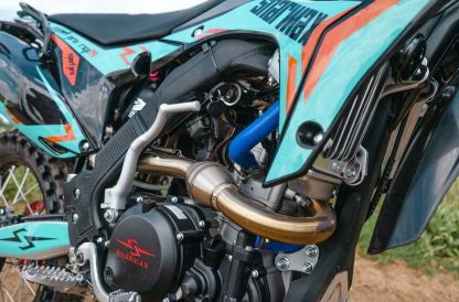 На мотоцикле установлено все необходимое для оффроуда: вилка “перевертыш”, литые рычаги задней прогрессии, алюминиевый маятник, прочный задний бугель, “злая” внедорожная резина Kenda. А также: усиленные легкосплавные колёсные диски MOJO, усиленная цепь, защита рук, датчик моточасов, прочные анодированные CNC ступицы, складные СNC рычаги тормоза и сцепления, колесные подшипники NTN, защита коллектора, картера двигателя и тормозных дисков. Мощная гидравлическая тормозная система HSК Racing остановит байк в любых условиях.