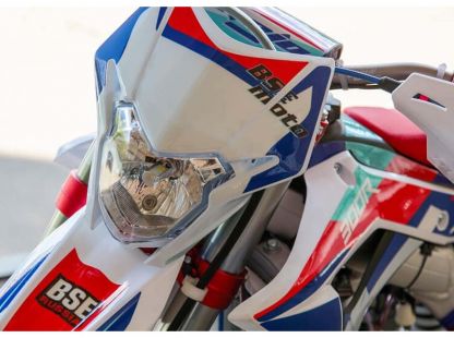 На BSE RTC300R также можно с комфортном отправиться в продолжительное путешествие благодаря удобному сиденью, широкому спортивному рулю, наличию электростартера и топливному баку на 6.5 литра. C яркой LED фарой головного света можно кататься в ночное время. Хочется также отметить современный дизайн мотоцикла.