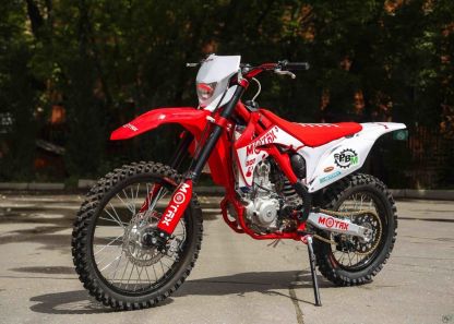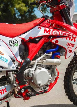 В этом сезоне Motax представил множество моделей кросс и эндуро мотоциклов. И вот одна из новинок, перед вами - MOTAX EX 300. Он позволит вам реализовать все ваши желания и потребности в экстримальной езде. Яркий и запоминающийся облик, сочетание синего и белого цвета. Рама кроссового мотоцикла MOTAX EX 300 выполнена из хромолибденового сплава, окрашена она в черный цвет. Просчитанная геометрия рамы, позволит разместиться комфортно райдеру ростом от 165 см. Двигатель одноцилиндровый, четырехтактный Zongshen 177 FMM (NC300), 299 см. куб. с водяным охлаждением (крутящий момент 25 Нм при 7000 об./мин.). Коробка механическая шести ступенчатая.