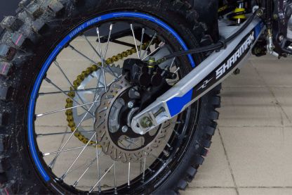 Подвеску Sharmax Power Max 250 можно настроить под грязь, камни и песок без потери качества. Передняя вилка фирмы KKE имеет регулировки сжатия и отбоя, задняя (KKE) — справится с любыми преградами, от камней до деревьев. Байк легко настроить под свой вес, подобрав идеальный баланс жёсткости.