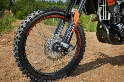 Подвеску Sharmax PowerMax 280 PR можно настроить под грязь, камни и песок без потери качества. Передняя вилка фирмы KKE имеет регулировки сжатия и отбоя, задняя (KKE) — справится с любыми преградами, от камней до деревьев. Байк легко настроить под свой вес, подобрав идеальный баланс жёсткости.