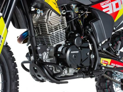 Обновлённый, Sharmax Sport 300 Air — идеально сбалансированный байк с системой воздушного охлаждения. Он создан для тех, кто продолжает своё путешествие в мире эндуро. Улучшенная подвеска, новый двигатель с балансировочным валом усовершенствованная тормозная система! В основе — качество и надёжность.